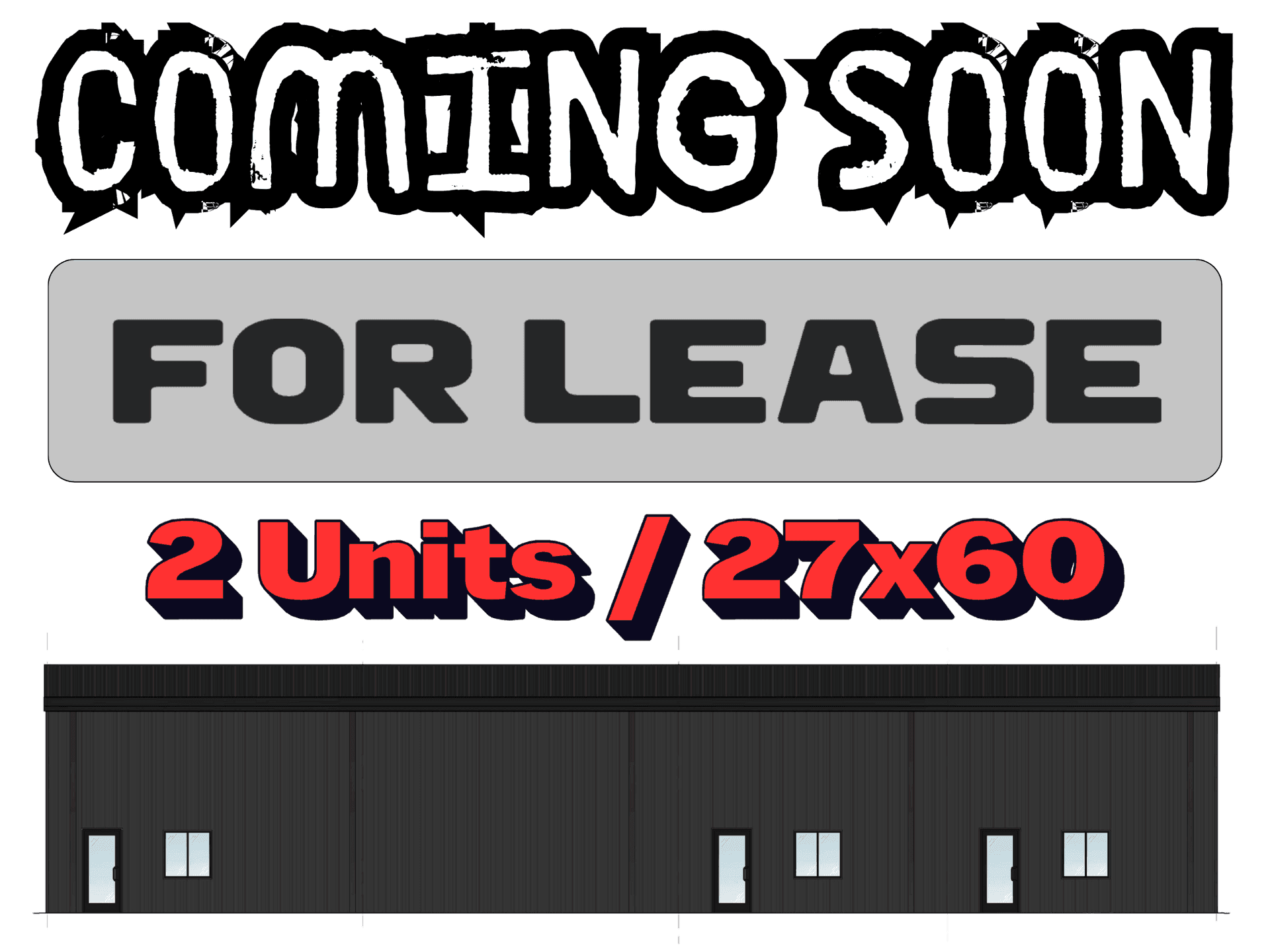 New facility coming soon Space available for lease! 2 bays avaiable 27 x 60 Office space & Garage For more information please contact us!